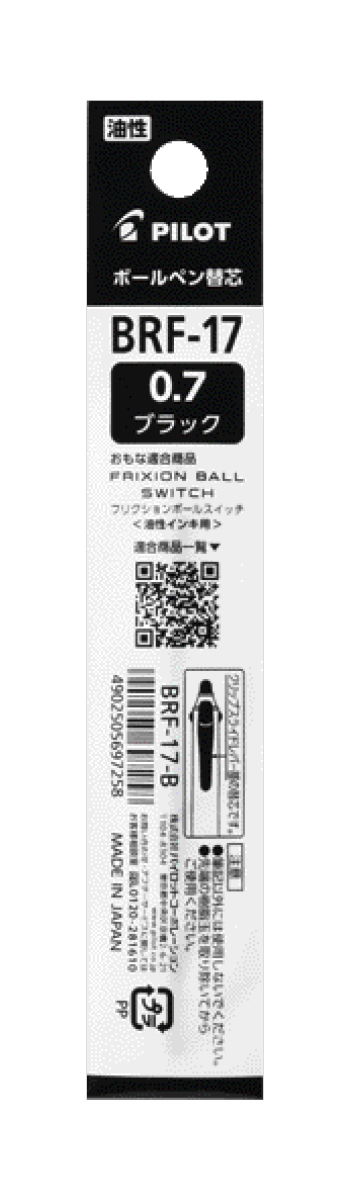 フリクションボールスイッチに使用できる油性ボールペン替芯です。